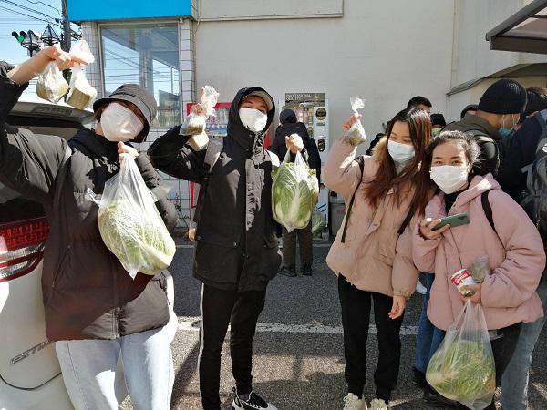 久しぶりに登校した学生たちに、たくさんの食料を配布することができました。