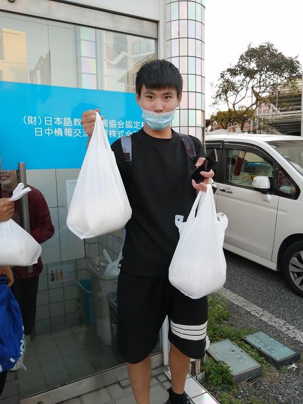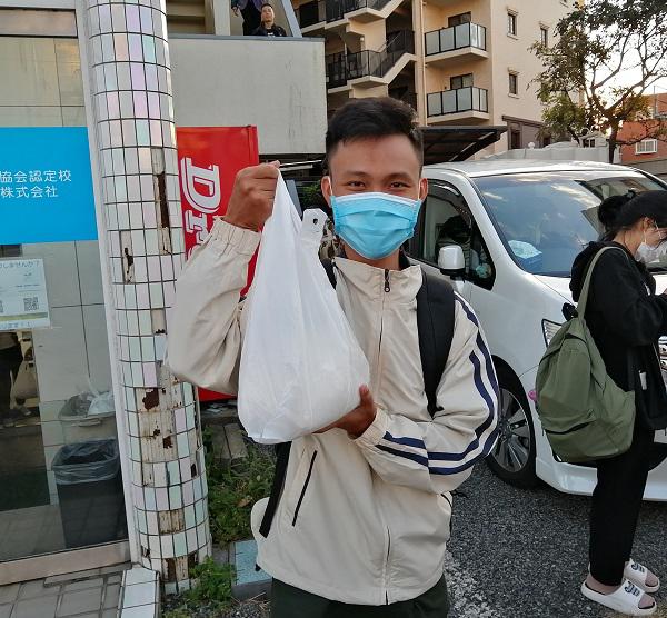 10月に入国した学生に、一人3kgずつ配ることができ、皆 とても喜んでいます。