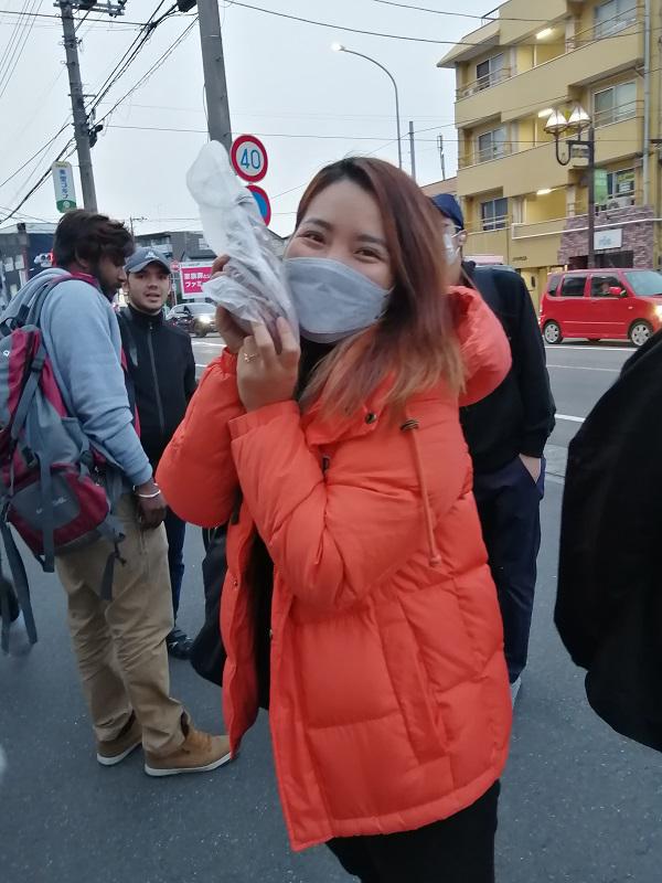 授業が終わった学生たちは、大よろこびでした。30kgのさつまいもが、あっという間になくなってしまいました。