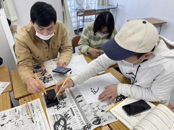 慣れない筆を楽しそうに使って、漢字を書いていました。