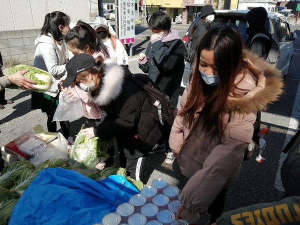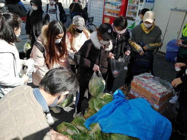 久しぶりに登校した学生たちに、たくさんの食料を配布することができました。