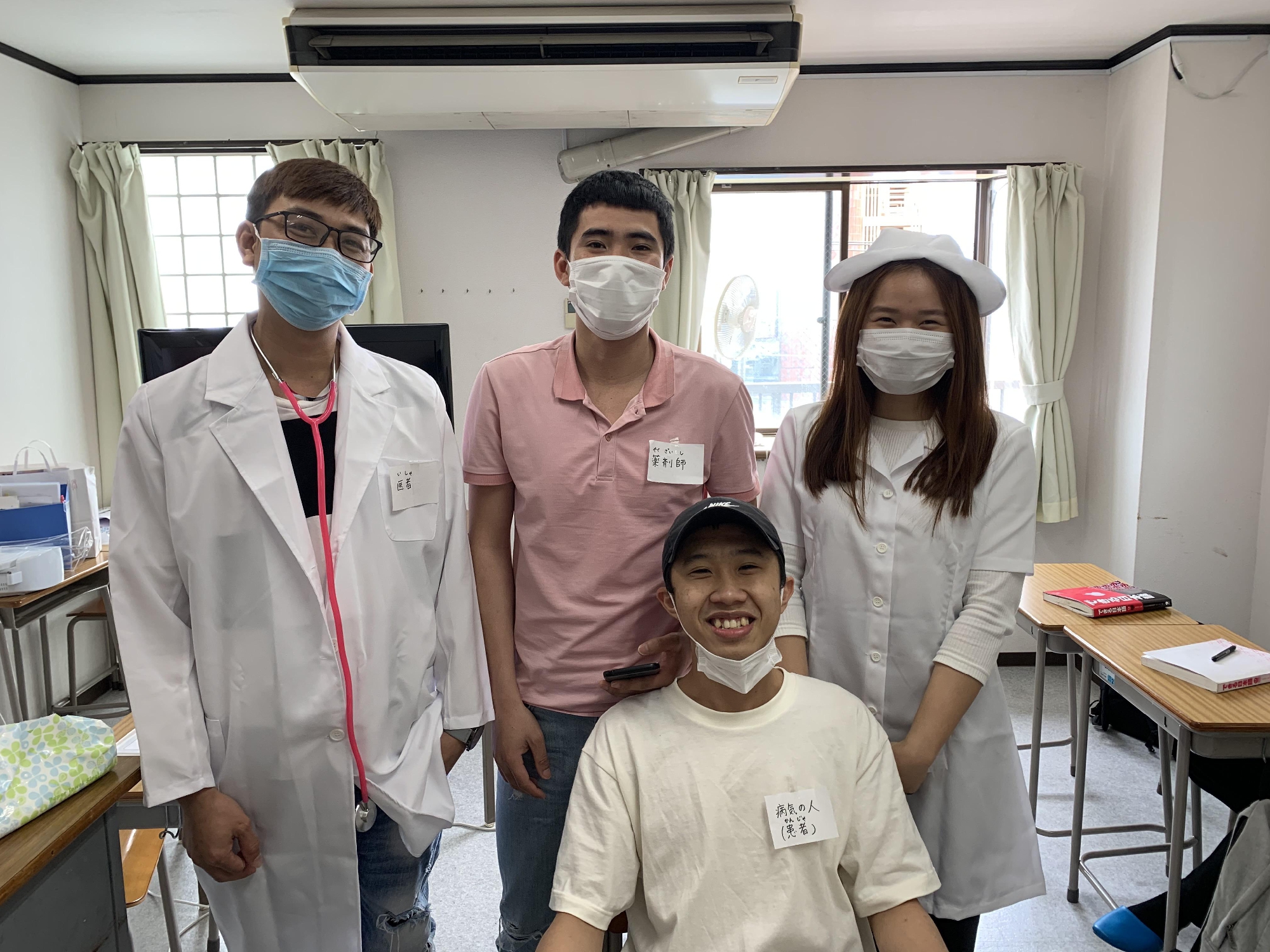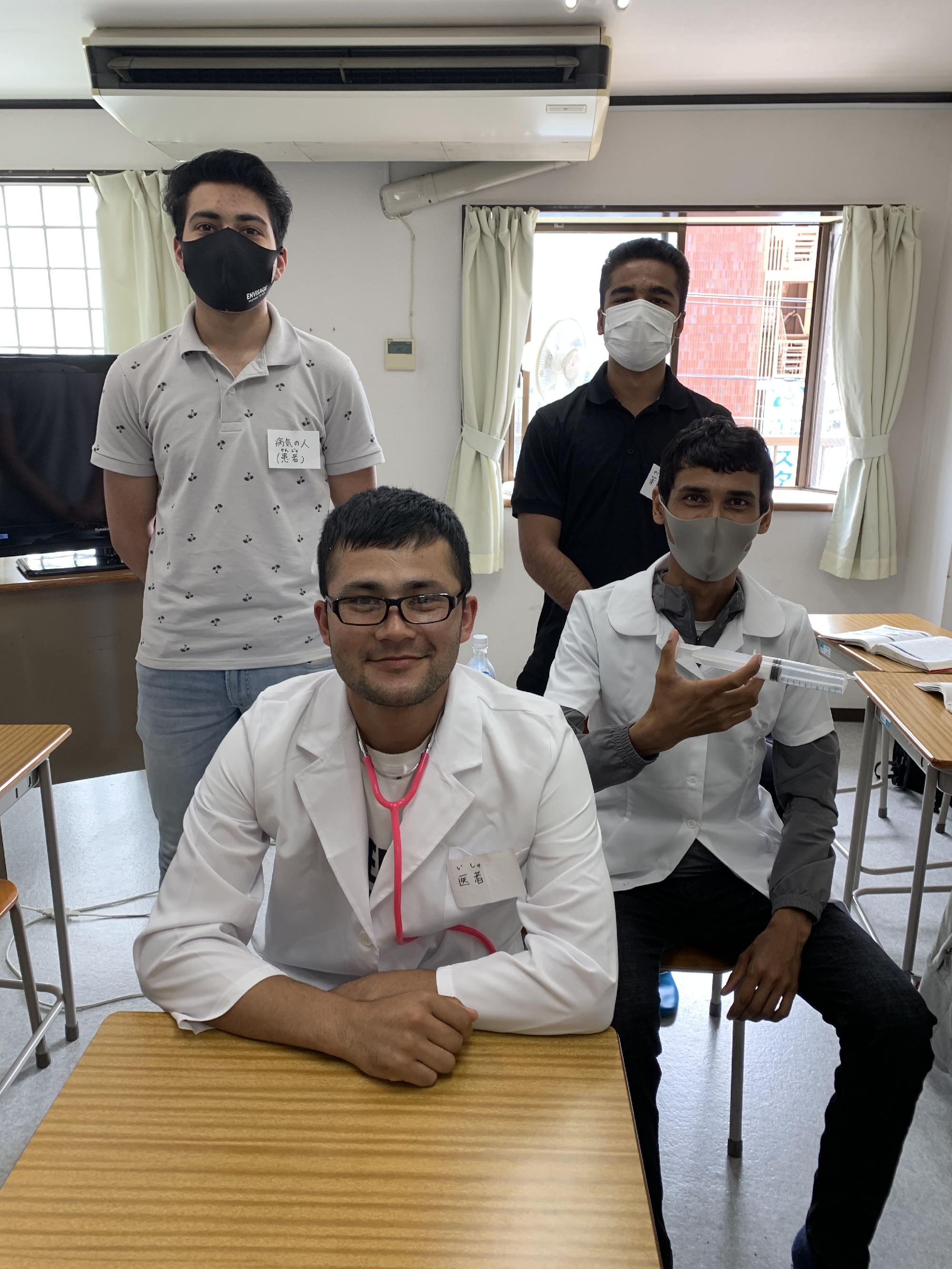 病気やけがのとき、病院で話ができますか? クラス全員が、医者・患者・薬局ではたらく人になって、とても楽しい授業ができました。